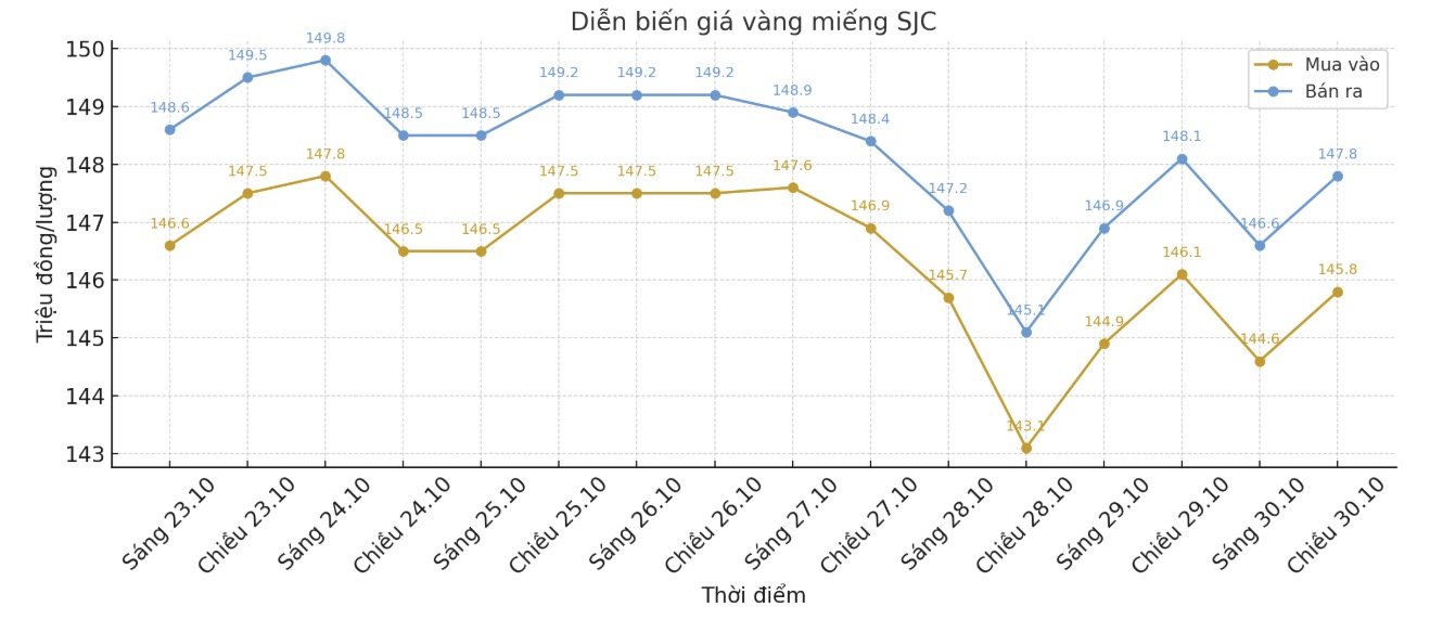 Diễn biến giá vàng SJC những phiên giao dịch gần đây. Biểu đồ: Khương Duy