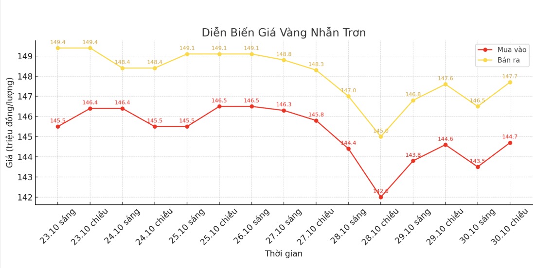 Diễn biến giá vàng nhẫn những phiên giao dịch gần đây. Biểu đồ: Khương Duy