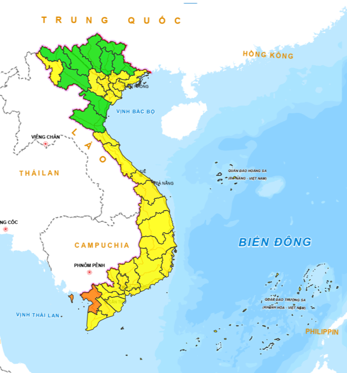 Dự báo chất lượng không khí các khu vực trên cả nước ngày 16/3/2026 (Màu Xanh – tốt; Vàng – trung bình; Cam - kém).