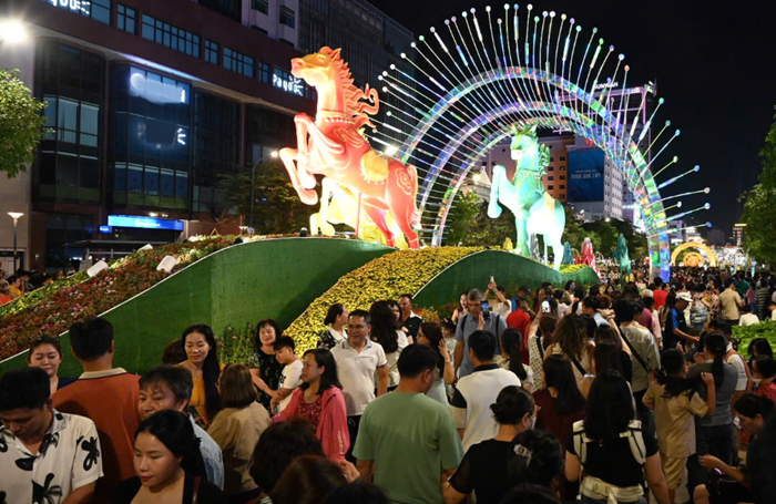 Tại TP. HCM, dịp Tết nguyên đán Bính Ngọ 2026, TP. HCM chú trọng đầu tư thiết kế, kết hợp hài hòa bản sắc địa phương trong từng đại cảnh, tiểu cảnh... tạo sức hút du khách trong và ngoài nước. Điểm nhấn là Đường hoa Nguyễn Huệ được tổ chức đồng bộ tại ba địa điểm: Phố đi bộ Nguyễn Huệ phường Sài Gòn, phường Thủ Dầu Một và phường Vũng Tàu. Toàn bộ tuyến đường được xây dựng như một hành trình văn hóa xuyên suốt. Mỗi đại cảnh không chỉ là điểm nhấn thị giác mà đều gắn với một sự tích, một lớp nghĩa riêng.