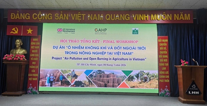 Ngày 4/3, tại TP. HCM diễn ra Hội thảo tổng kết Dự án “Ô nhiễm không khí và đốt ngoài trời trong nông nghiệp tại Việt Nam”. Sự kiện thu hút đông đảo nhà khoa học, chuyên gia môi trường, đại diện cơ quan quản lý và các tổ chức xã hội; được tổ chức theo hình thức kết hợp trực tiếp và trực tuyến, kết nối các điểm cầu Hà Nội, Huế và nhiều địa phương trên cả nước.