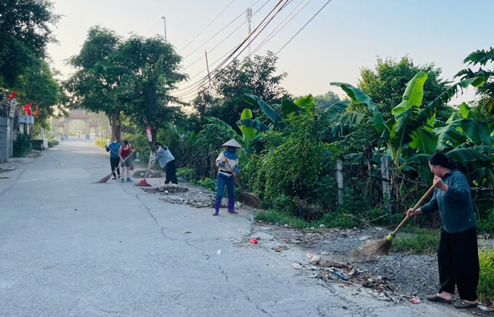 Cộng đồng dân cư dọn dẹp vệ sinh môi trường đường làng ngõ xóm.