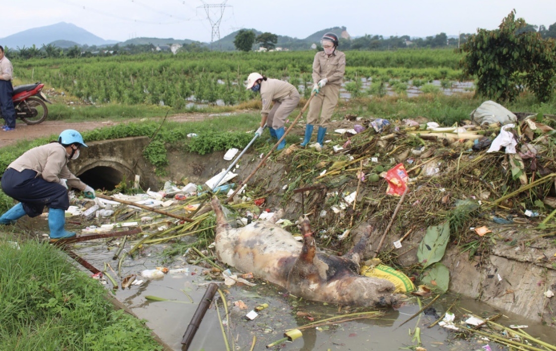 Xác lợn chết trên kênh mương tạo điều kiện thuận lợi cho ruồi, muỗi, chuột, gián sinh sôi, làm gia tăng nguy cơ lây lan các dịch bệnh