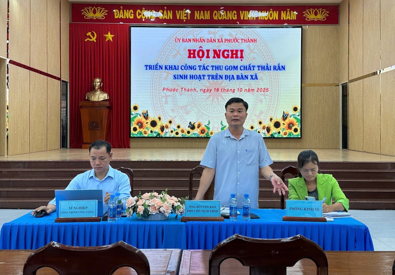 Ngày 16/10, UBND xã Phước Thành tổ chức hội nghị triển khai công tác thu gom chất thải rắn sinh hoạt, nhằm nâng cao hiệu quả quản lý, xử lý rác thải và giữ vững tiêu chí môi trường trong xây dựng nông thôn mới. Hội nghị có sự tham dự của ông Bùi Văn Bảo – Phó Chủ tịch UBND xã; ông Nguyễn Tuấn Vinh – Phó Giám đốc Xí nghiệp Công trình công cộng Phú Giáo; cùng đại diện Phòng Kinh tế xã, Ban Phát triển 17 ấp và các doanh nghiệp, hợp tác xã hoạt động trên địa bàn.