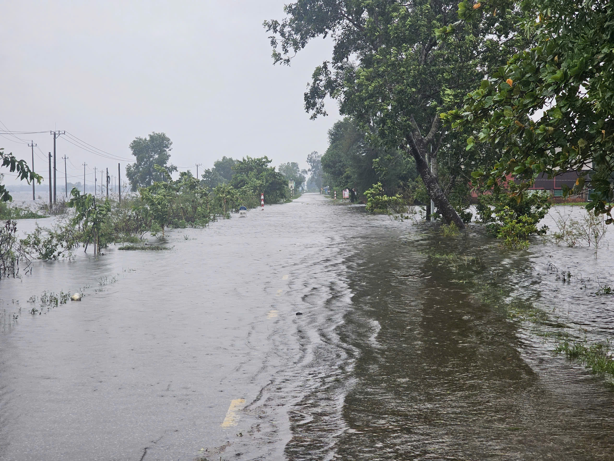 Tuyến đường 582 qua thôn Thiện Đông, Thiện Tây bị ngập lụt, chia cắt.