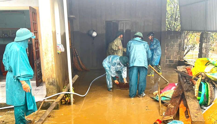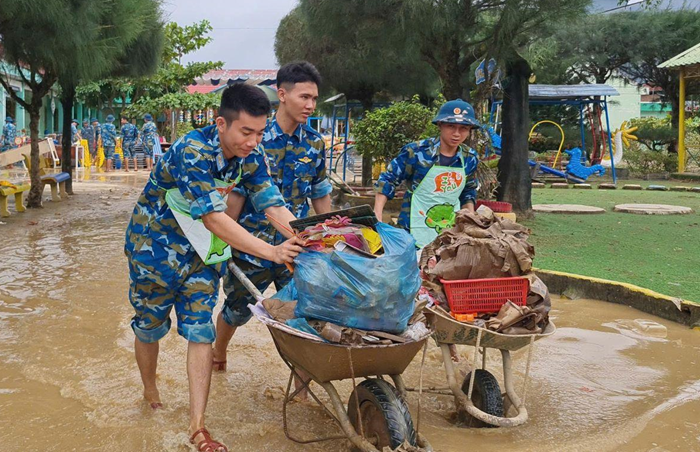 Lực lượng quân đội hỗ trợ địa phương dọn dẹp sau mưa lũ.