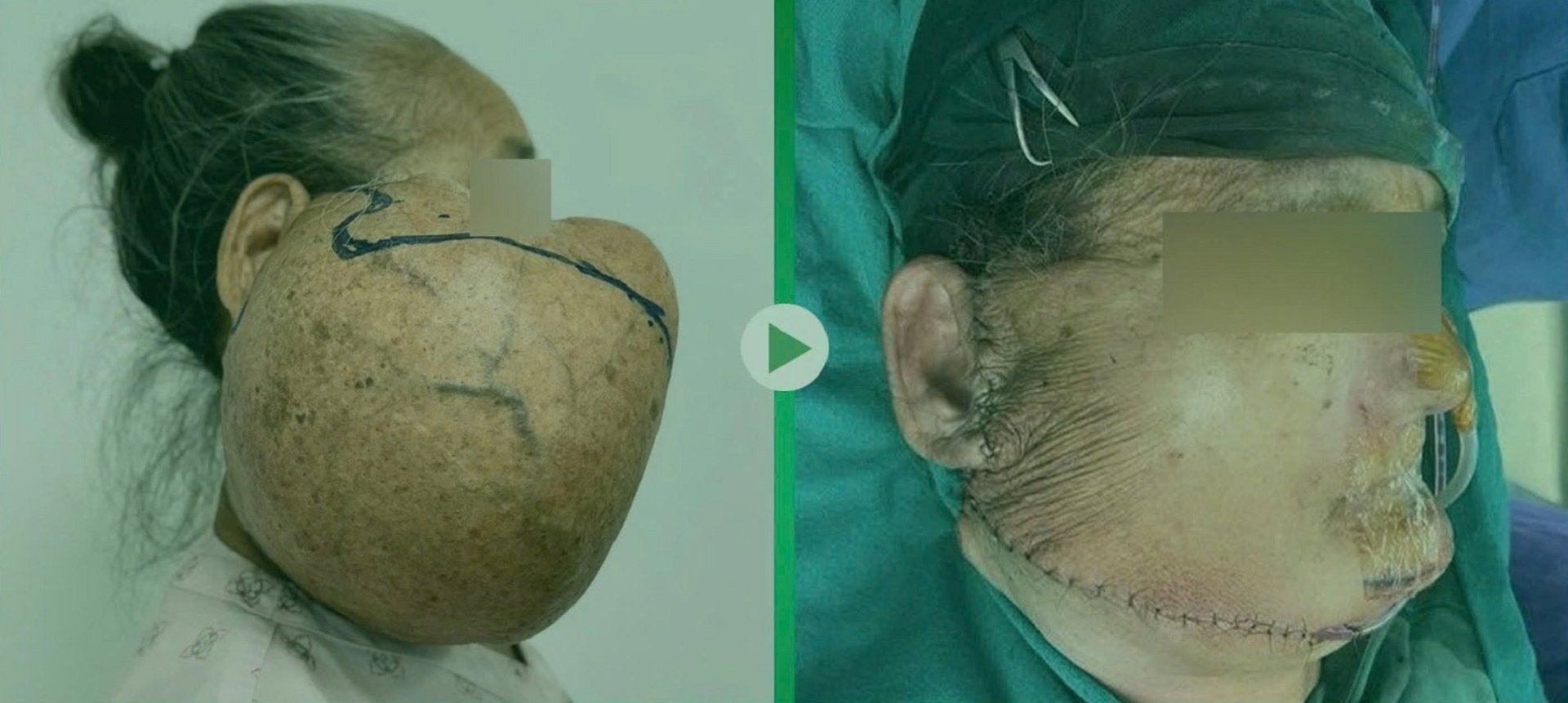Phẫu thuật cắt thành công khối u khổng lồ trên mặt người phụ nữ 63 tuổi