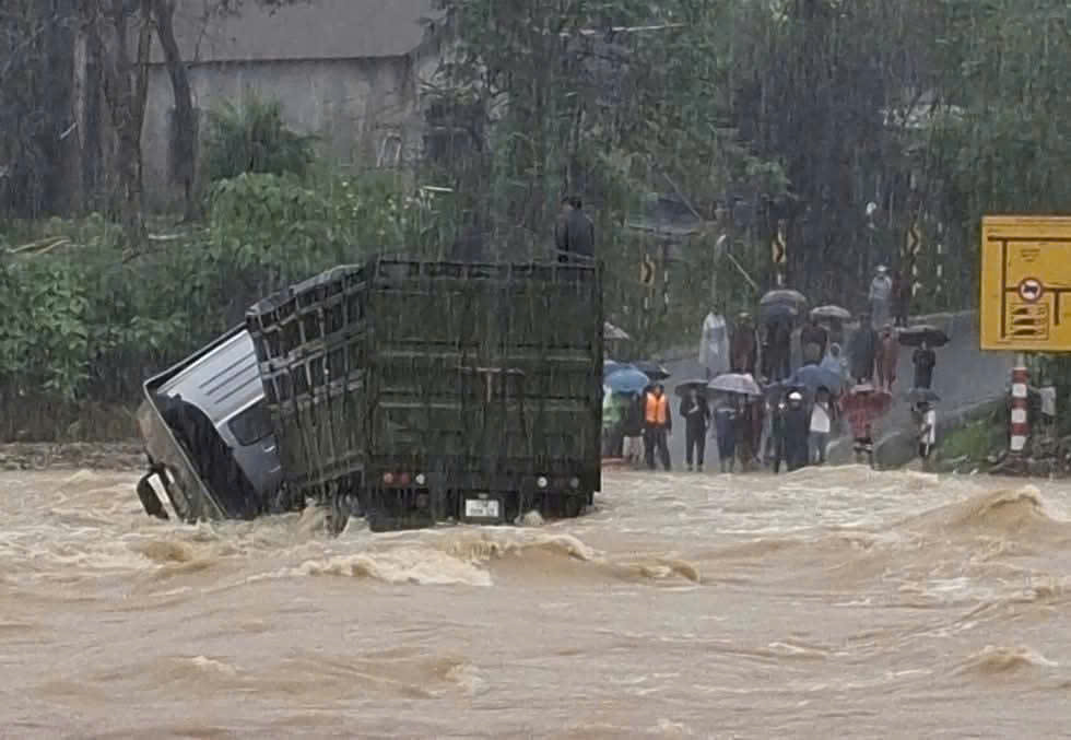 Tài xế xe tải bị lũ cuốn trôi mất tích khi lái xe qua ngầm tràn ngập lụt.