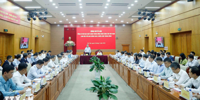 Tổng Bí thư làm việc với Ban Chính sách, Chiến lược Trung ương. Ảnh: QH