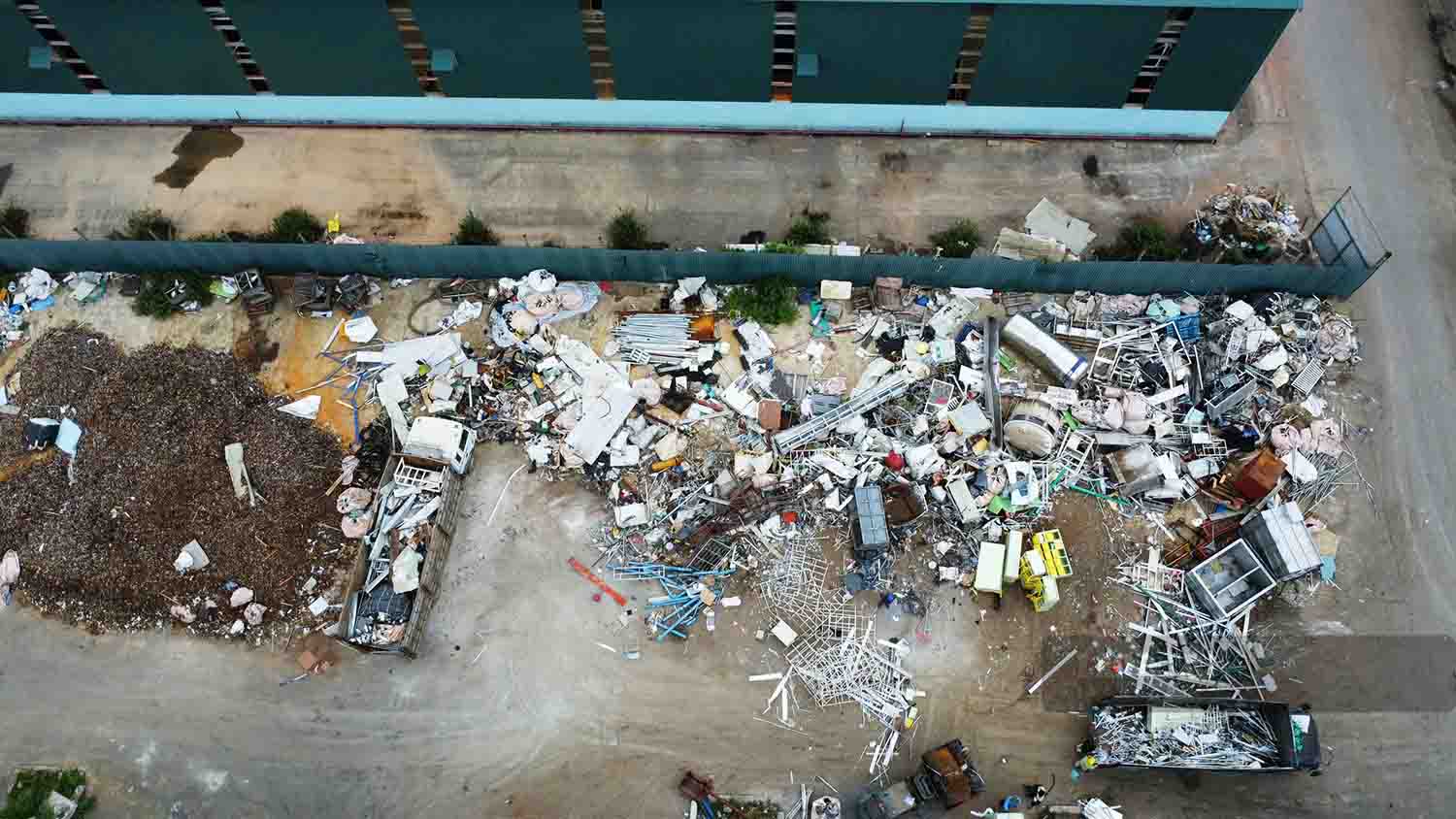 Bên ngoài các nhà xưởng, nhiều loại rác thải công nghiệp như phế thải nhựa, nilong, nhôm, sắt, thùng đựng hóa chất và một số loại nghi là xỉ thải được tập kết tràn lan, không có các biện pháp che đậy, bảo quản trước khi xử lý.