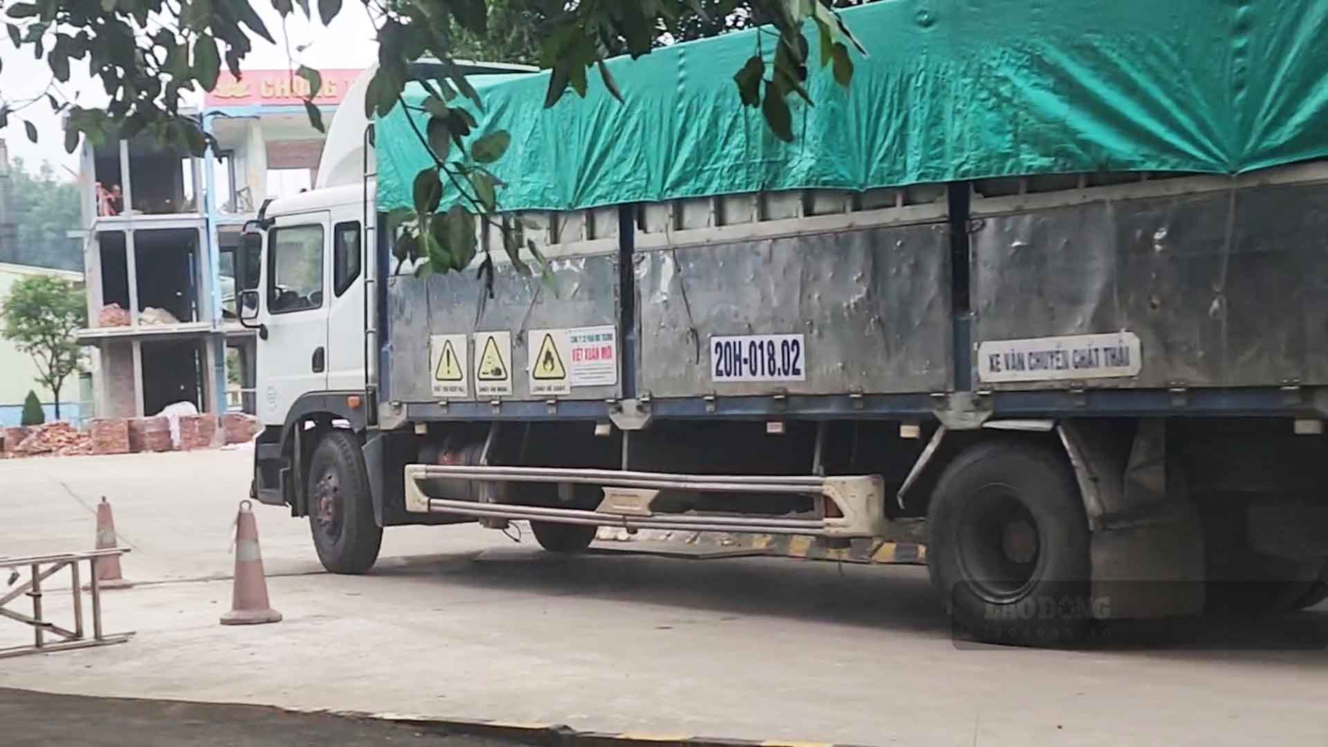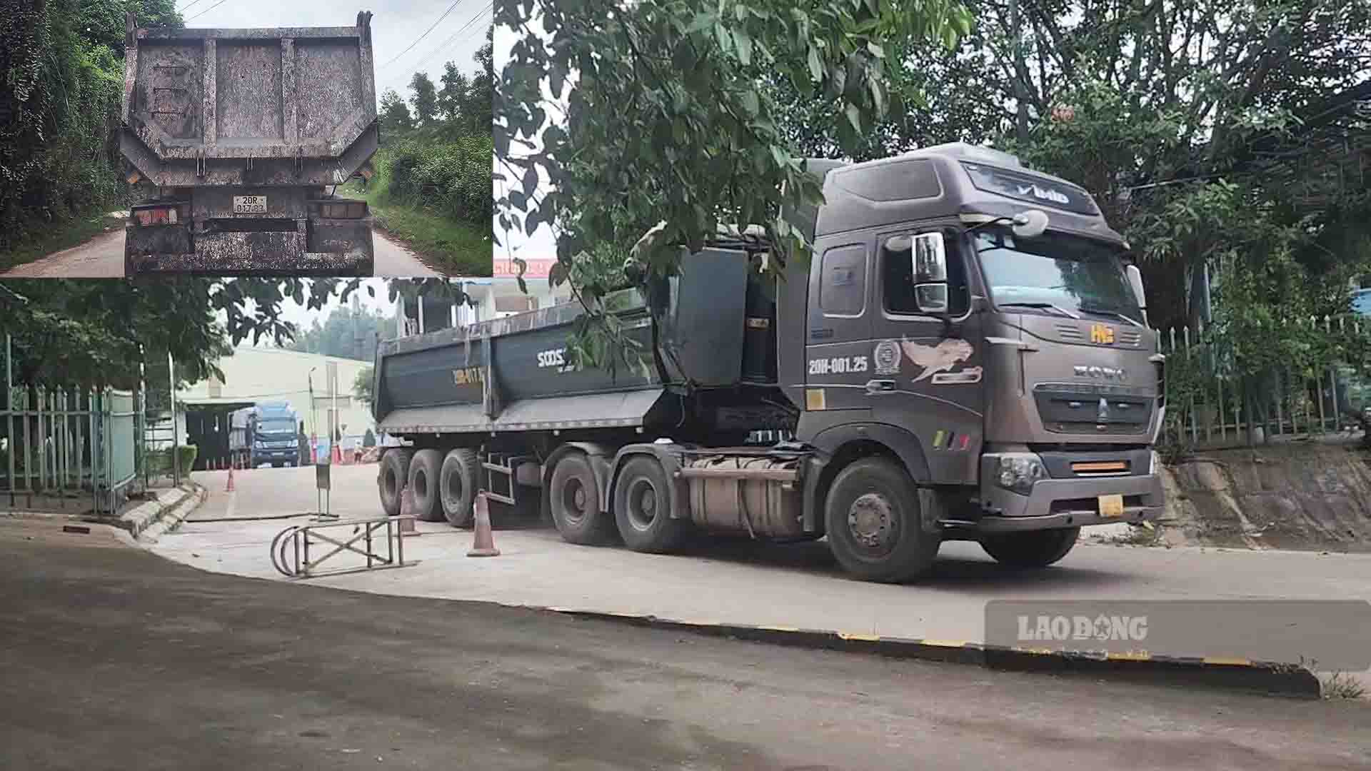 Nhiều xe tải vẫn còn vương vãi chất thải trên thành thùng sau khi đi ra từ nhà máy. Ảnh: PV