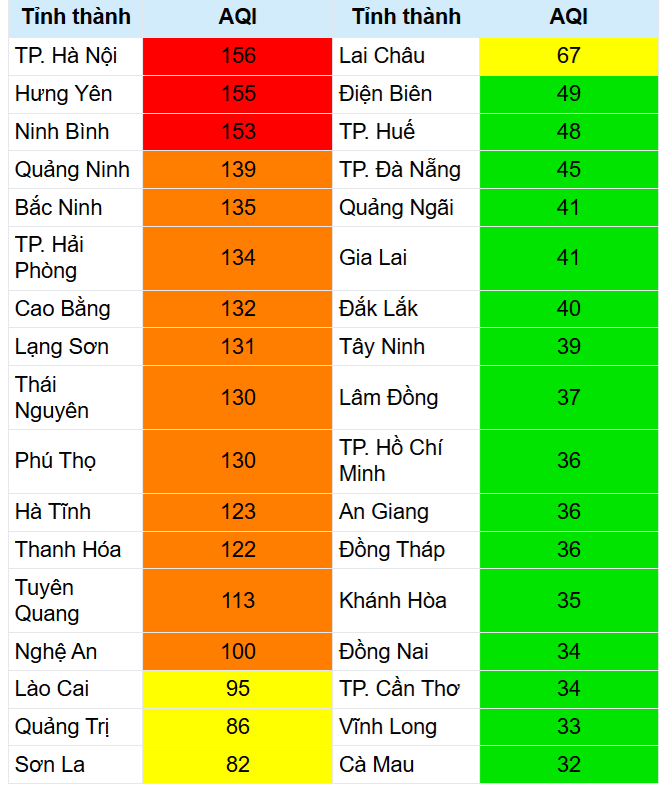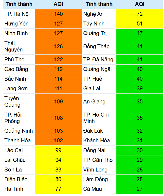 Từ khóa: Xếp hạng, chất lượng không khí, các tỉnh, thành phố, trên cả nước (ngày 5 và 6/3), môi trường ngày nay